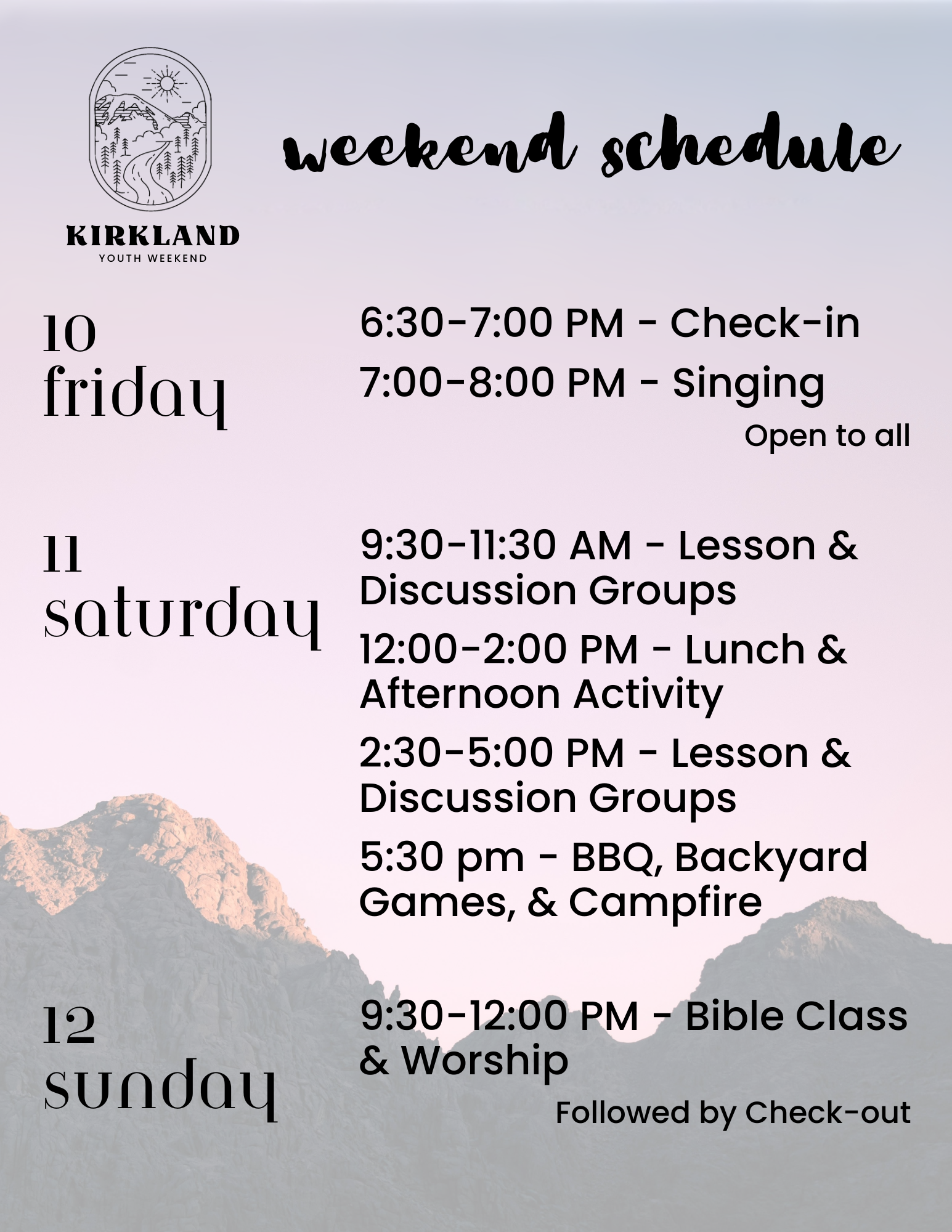 Kirkland Youth Weekend - July 10th-12th